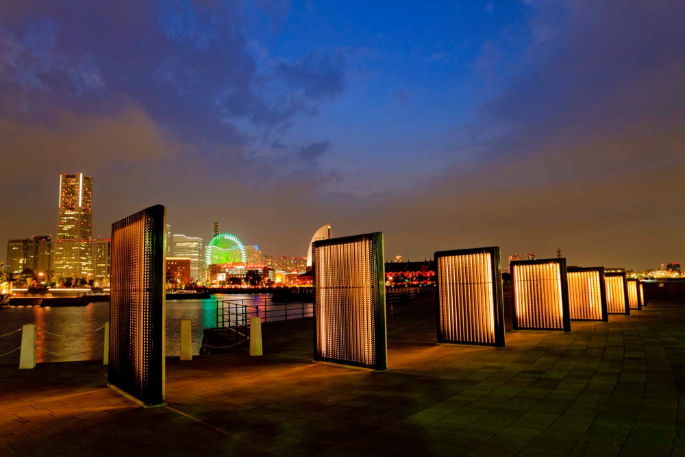 銀杏が黄金色に輝く日本大通りから始まり、マジックアワーに包まれる象の鼻パーク、赤レンガ倉庫、そしてみなとみらいのきらめく夜景へ。