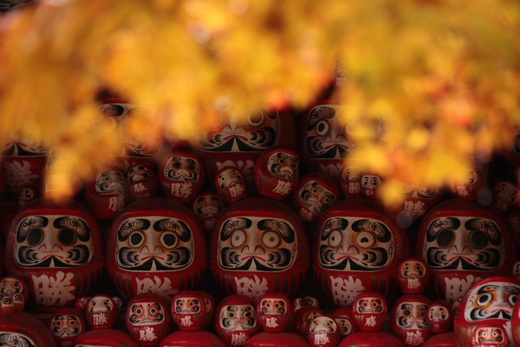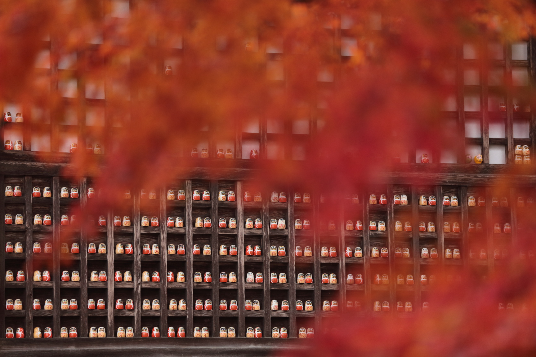 勝尾寺の境内にたくさんある「だるまさん」と紅葉を絡めて撮影する際のテクニックもご紹介します。