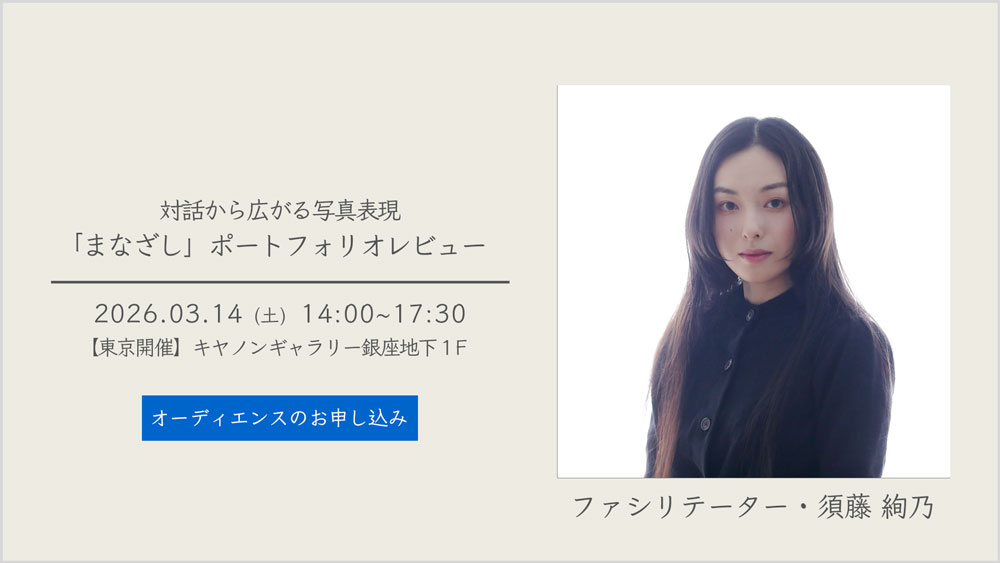| YG26010006 | 2026年3月14日(土) 14:00~17:30 | キヤノンギャラリー銀座地下1F | オーディエンス |